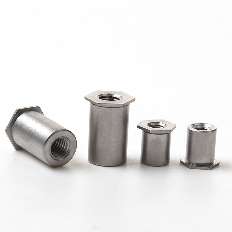 Vakioalumiiniseoksesta valmistettu kuusikulmainen niittimutteripylväs on yleensä valmistettu vähähiilisestä teräksestä (kuten luokat 1008, 1010) tai keskihiilestä teräksestä, kun tarvitaan suurempaa lujuutta. Tämän ansiosta ne muodostuvat helposti asennuksen aikana, ja niillä on tarpeeksi lujuutta useimpiin päivittäisiin kiinnitystöihin. Tietyn niittimutterin pylvään tarkka teräslaatu on lueteltu materiaalitodistuksessa, tarkista vain varmistaaksesi.