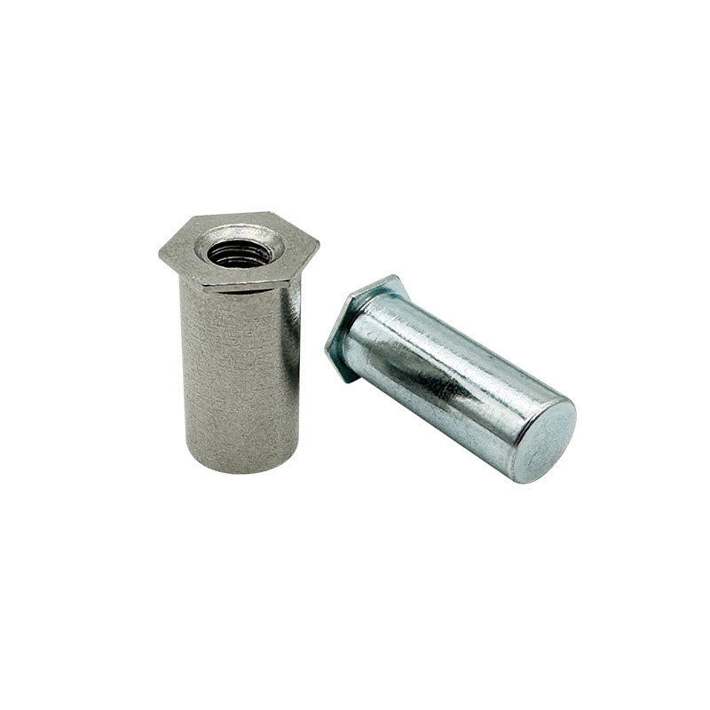 Asentaaksesi hiiliteräksen kuusikulmion niitmutteripylväs, käytät niittamutterityökalua. Kuusikulmainen runko estää sitä pyörittämästä, kun laitat sen ennalta porattuun reikään. Työkalu vetää karjan pään päälle, jolloin holkkipylväs taivuttaa työkappaleen takaosaa vasten. Se luo kiinteän, pysyvän kierteisen ankkuripisteen. Reiän koon sovittaminen niitit mutteripylvään halkaisijan halkaisijaan on täällä erittäin tärkeää, saat sen väärin ja se ei toimi oikein.