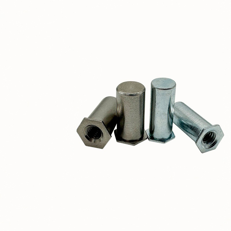 Hiiliteräs kuusikulmainen niittipylväs on erikoistunut kiinnitys, jossa on sisäiset kierteet. Se on tehty luomaan kovia, kuormittavia kierteitä ohuissa tai haurissa materiaaleissa, joissa et voi käyttää hitsausta. Pysyvänä ankkurina toimiessaan siinä on kuusikulmainen runko, joka estää sen pyörittämistä asennuksen aikana. Ontto pylväs romahtaa ulospäin, kun käytät niittamutterityökalua muodostaen kiinteän pullistuman sokealle puolelle.
