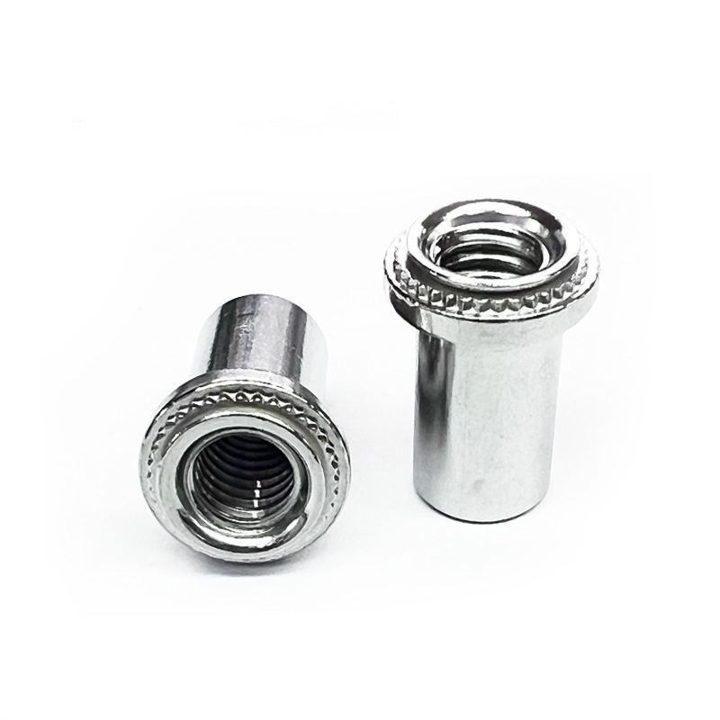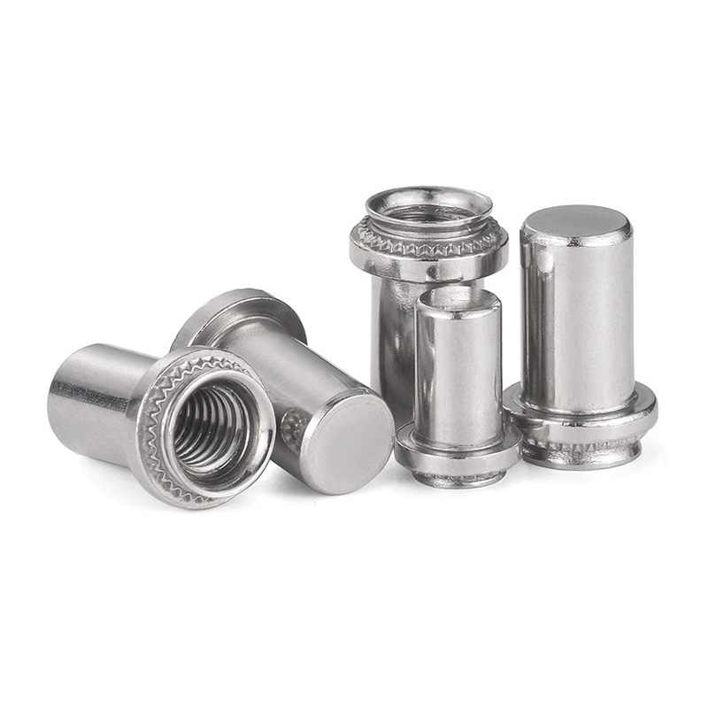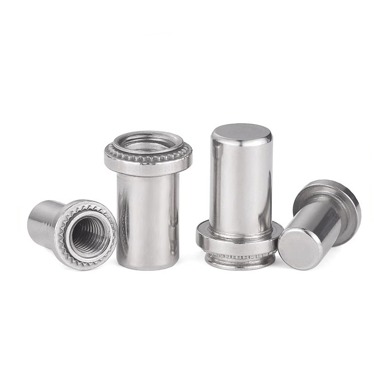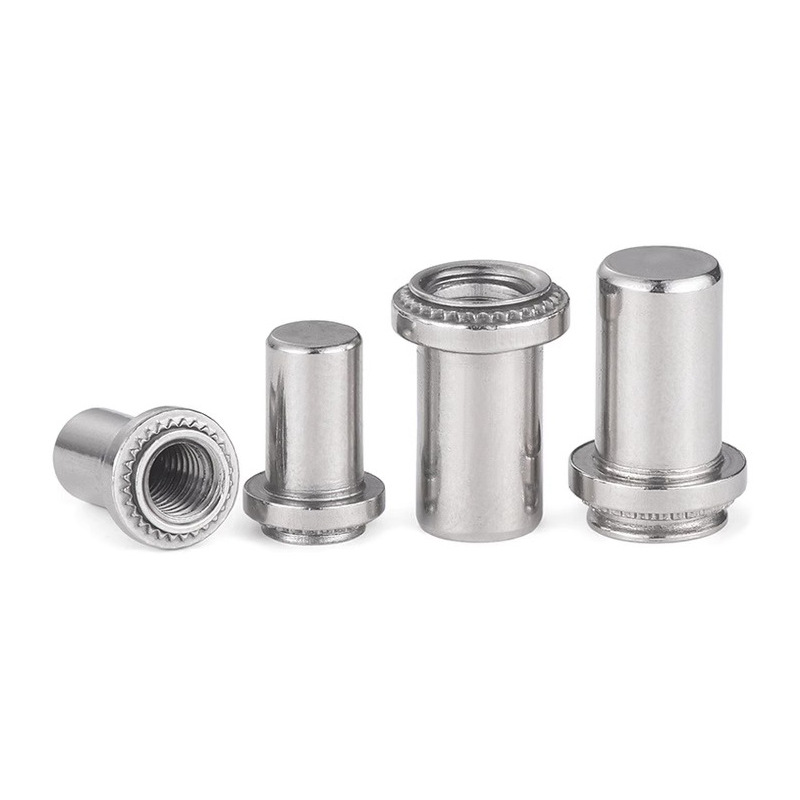 Hiiliteräksen tiivistysmutterin asentamiseksi tarvitset erikoistuneen kiinnitystyökalun ja muottisarjan, joka vastaa tarkalleen mutterin kokoa. Laita mutteri ensin esiasetettuun reikään ohutlevylle. Sitten työkalu soveltaa ohjattua painetta, mikä tekee mutterin lentäjästä ja Knurl -uppoaa ympäröivään metalliin. Tämä kylmämuodostusprosessi lukitsee ruostumattomasta teräksestä valmistetun mutterin paikoilleen hyväksi ja samalla se puristaa sisäänrakennetun tiivistimen aluslevyn paneelia vasten. Näin se luo vuodonkestävän sinetin, joka tekee näistä muttereista ainutlaatuisia.