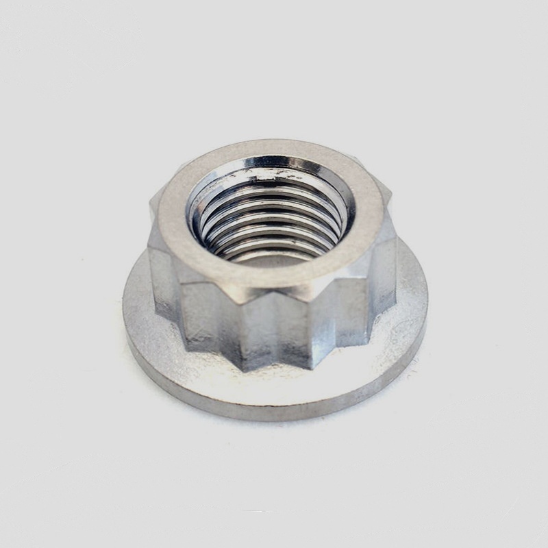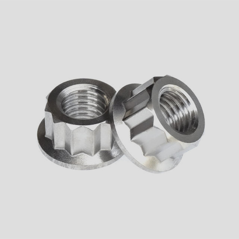 Tällä kustannustehokkaalla 12 pisteen pesukone -mutterilla on hyvin erottuva ulkonäkö - sillä on 12 -pisteinen (vastaa kaksinkertaista kuusikulmaista) nostettua päätä. Tämä malli tarjoaa hihan 30 asteen kosketuspinnan, joten jopa rajoitetulla tilalla voidaan käyttää suurempi vääntömomentti.