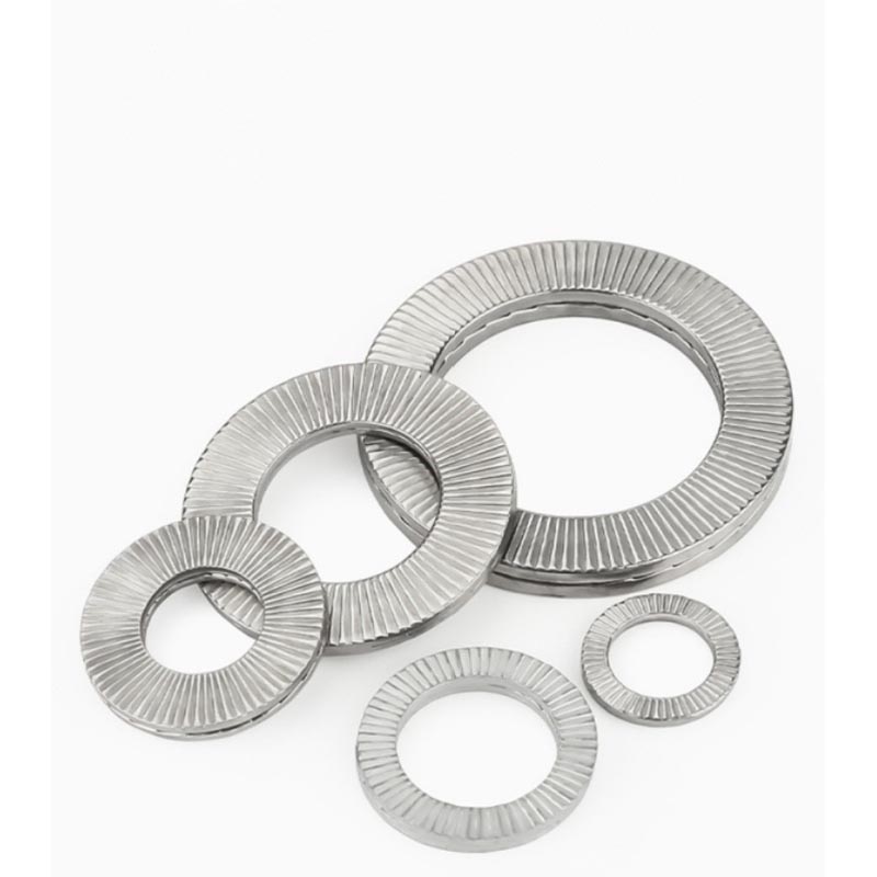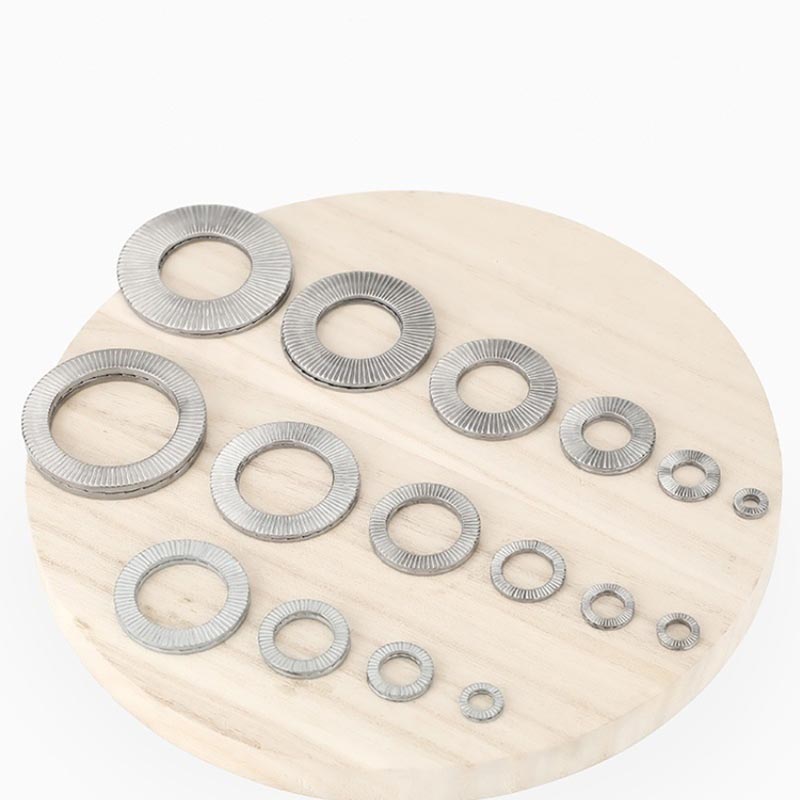 Tämä kaksikerroksinen muotoilu pitää liiton tiukasti tarvitsematta liimaa, lukkitiiviitä kemikaaleja tai muita ylimääräisiä juttuja. Toisin kuin tavalliset litteät aluslevyt, se ei anna pulttien irtoa ajan myötä. Tämä tarkoittaa, että sinun ei tarvitse tarkistaa tai korjata niitä niin usein, ja voit käyttää pesukonetta uudelleen monissa tapauksissa. Sekaksikerroksinen itse lukittava pesukoneToimii hyvin autoille, koneille, lentokoneille ja muille paikkoille, joissa asiat värähtelevät paljon tai tarpeen pysyä turvallisena pitkällä aikavälillä.