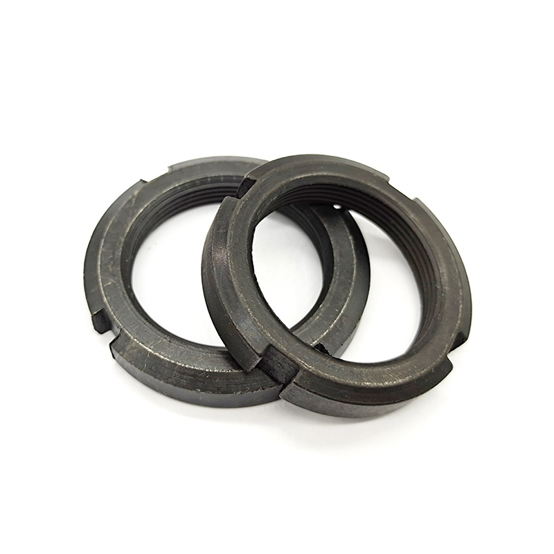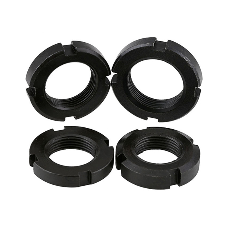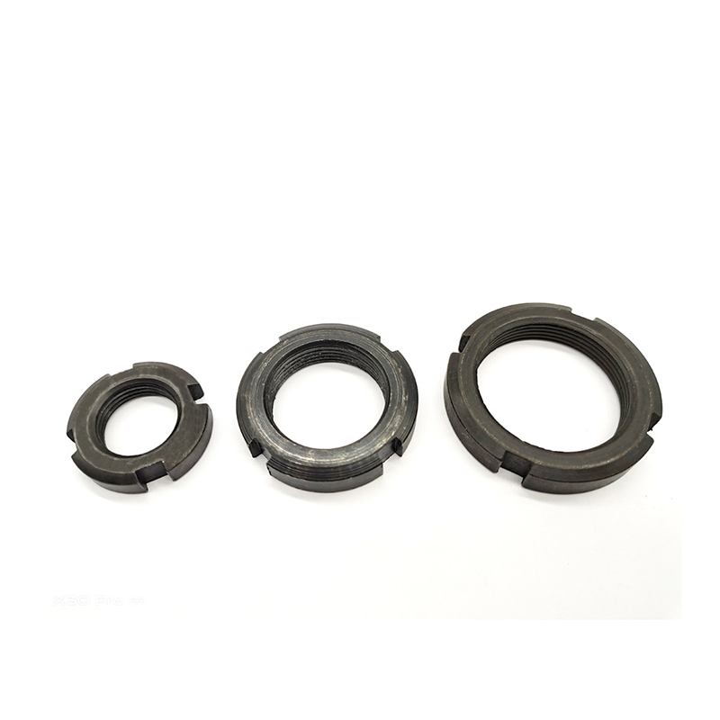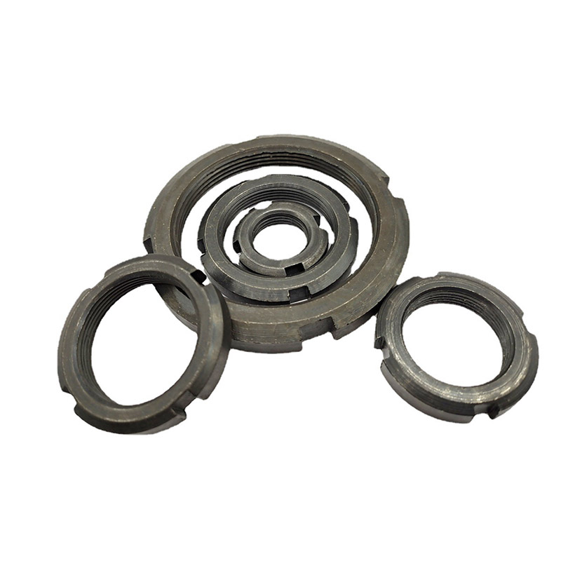 Tämä kaksoisturvallinen uralukittu pyöreä mutteri on tärkeä osa autojen kokoonpanossa - erityisesti pyörän akselin laakerien ja akselijärjestelmän kiinnittämisessä, tärinänkestävyys on avainasemassa. Siinä on pyöreä muotoilu, jossa on laipat sisäpuolella, sekä sisäiset lukitusosat ja säteittäiset urat, jotka voivat kiinnittyä tukevasti määrättyyn asentoon.