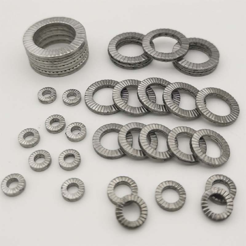 V:Kaksinkertainen pinottu itse lukittava pesukonetehdään tilanteisiin, joissa on paljon tärinää tai liikkuvia kuormia, joissa tavalliset kiinnittimet eivät yleensä toimi. Sitä käytetään paikoissa, kuten auton moottorin osat, lentokonekokoonpanot, raskaita konekonepultteja ja teräsrakenteen liitäntöjä. Se voi pitää kiinnitysvoiman vakaana, vaikka toistuva stressi on toistuva, mikä tekee siitä todella hyödyllistä kuljetinjärjestelmissä, tuuliturbiineissa ja rautatiejärjestelmissä. Lisäksi teollisuudenalat, joiden on poistettava asiat usein, kuten laitteet, jotka tarvitsevat paljon huoltoa, pitävät siitä, koska ne voivat käyttää sitä uudelleen. Koska tämä pesukone tarjoaa hyvän metalli-metalli-kosketuksen, sitä käytetään usein myös sähköisissä maadoitusjärjestelmissä kaarien tai löysämisen estämiseksi ajan myötä.