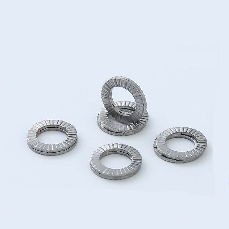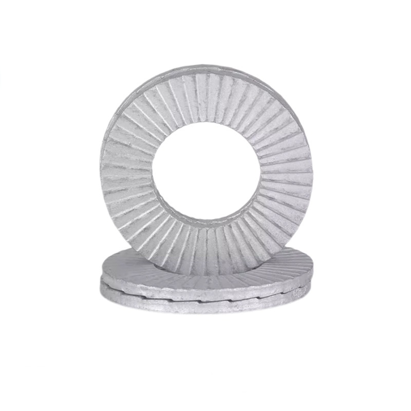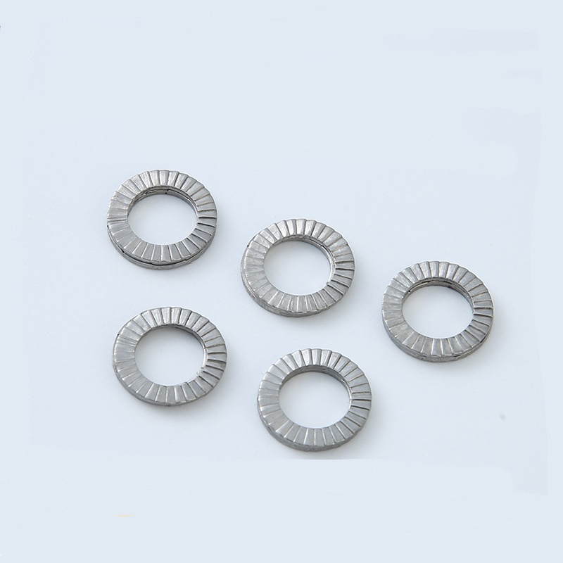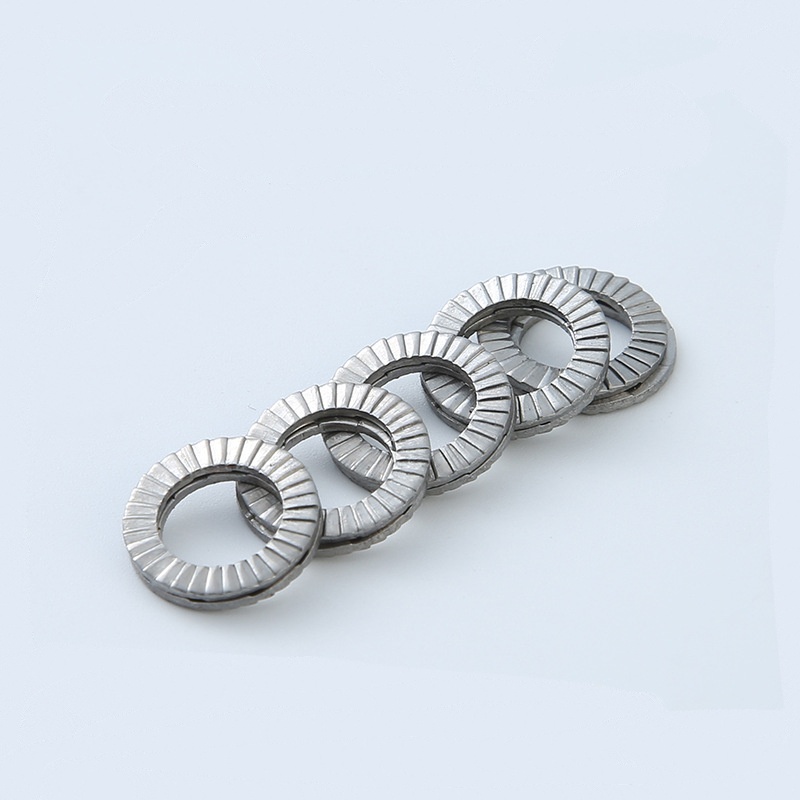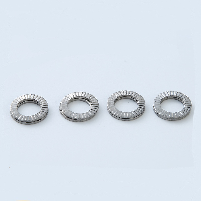 V: Asennus on yksinkertaista. Aseta tiivisteet mutterin ja työkappaleen väliin tai pultin pään alle. Varmista, että kaarevat päät ovat mutterin/pultin päätä kohti. Kiristä kokoonpano suositeltuun momenttiin. Aluslevy litistyy ja käyttää lukitusvoimaansa.