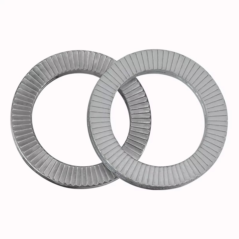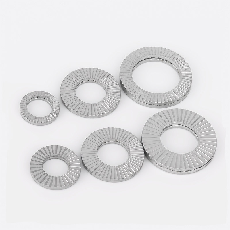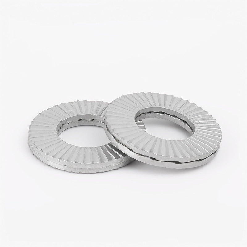 Epäonnistuminen Turvallinen kahden taiteen itsekokkien aluslevy on tyypillisesti valmistettu korkean hiilisen teräksestä (kuten SAE 1070 tai 1095) tai seosterästä. Nämä materiaalit tarjoavat aluslevyille tarvittavat elastiset ominaisuudet oikealle toiminnalle, samalla kun ne antavat luotettavaan toimintaan tarvittavan suuren vetolujuuden monissa käyttöolosuhteissa. Spring Steelin luonnollinen kyky pomppia takaisin antaa välilehdet taivuttaa paljon laitettaessa, luomalla tärkeän lukitusvoiman, joka vastustaa kääntymistä. Niissä oleva hiili tekee teräksestä tarpeeksi kovan, joten pienet harjanteet voivat todella kaivaa pintoihin. Teräs epäonnistuu Turvallinen kahden taiteen itsekokkien aluslevyt ovat riittävän vahvoja säännölliseen käyttöön ja tilanteisiin, joissa on paljon stressiä.