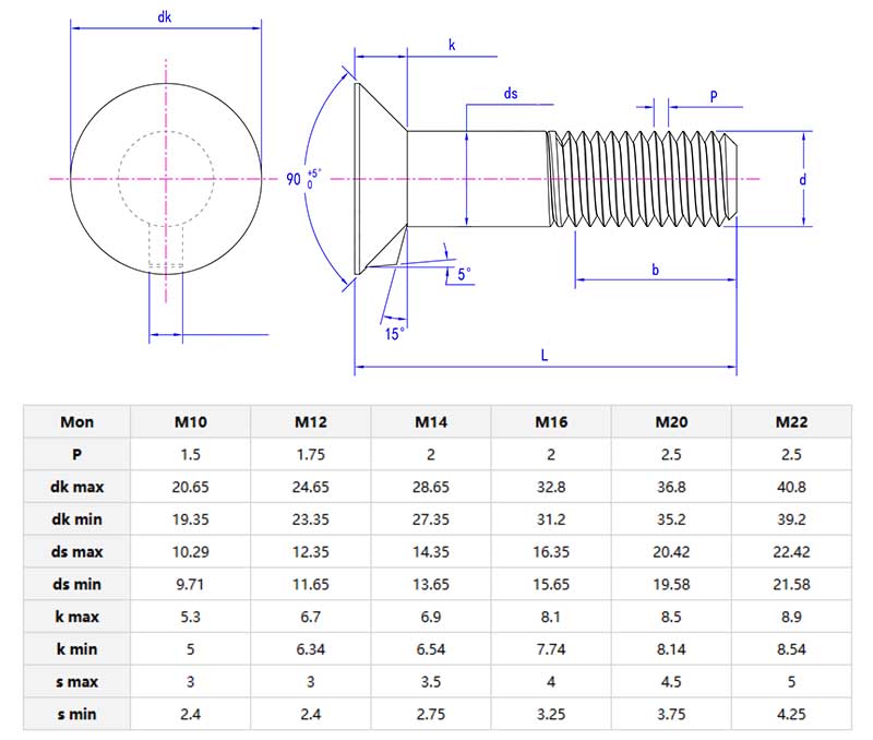 PääFlat Countersunk nib -pulttion tasainen. Asennuksen jälkeen se voi olla tasainen liittimen pinnan kanssa. Heillä ei ole ulkonäköä, eivätkä he ole ulkonäössä. Pultin pään alapuolella on käänteinen ulkoneva avainlohko, joka voidaan asettaa tarkalleen uraan.
