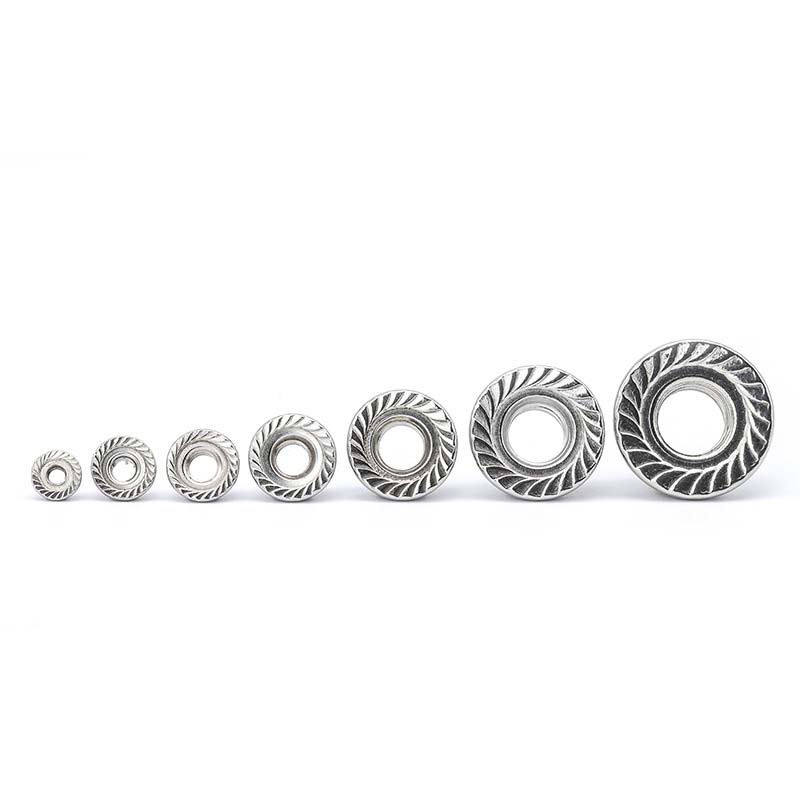 Kuusikulmiolaippamutterit hienolla sävelkierrollaOta paremmin sileillä tai kovilla pinnoilla, vähentäen liukumista. Ne ovat kalliimpia kuin karkeat nousupähkinät ja sopivat paremmin tarkkuustyöhön, kuten mekaaniseen kalibrointiin tai ilmailualan kokoonpanoon.
