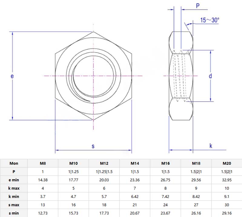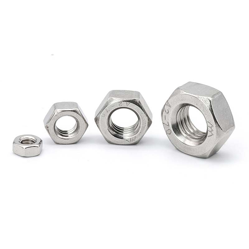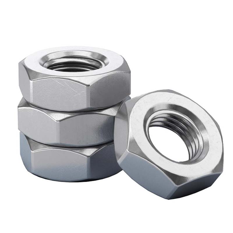 Kuusikulmio ohuet mutterit metrisella hienolla sävelkierrollaKäytä hienoa sävelkorkeutta, yleisesti käytettyjä kierteitä koskevat tekniset tiedot ovat M6X0.75 tai M8X1.0. Verrattuna karkeaan sävelkorkeuteen, sen iskunkestävyys on vahvempi. Materiaali on ruostumatonta terästä tai messinkiä.