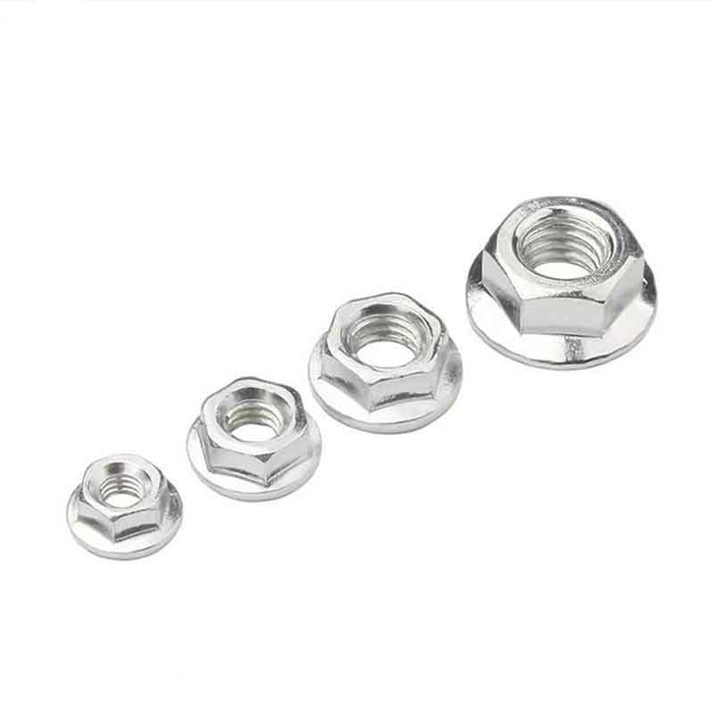 Tehokkaat laipalliset kuusiomutterit noudattavat yleisiä kansainvälisiä standardeja, jotka määrittävät niiden tarkan koon ja mekaaniset ominaisuudet. Päästandardeja ovat ISO 4161 (aikaisemmin DIN 6926) ja ASME B18.2.2. Koot kattavat esimerkiksi kuusioleveyden litteiden poikki (AF), kokonaiskorkeuden, laipan halkaisijan ja kierteen koon/välin (kuten M12x1,75). Laipan halkaisija on suurempi kuin kuusioosa, minkä vuoksi se auttaa levittämään kuormia. Niitä on yleisiä metrisiä ja imperial-kierrekokoja, yleensä M5/M6-M36 tai 1/4" - 1,5", joten ne sopivat erilaisiin suunnittelutarpeisiin.