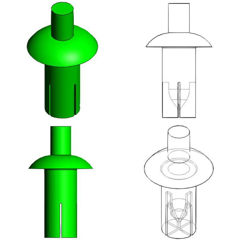 Suljetulla nivelydin tunkeutuvalla niitillä on ainutlaatuinen muotoilu, mukaan lukien ydin akseli ja holkki - yleensä niillä on suuri ja huomaamaton pää, joka tarjoaa hyvän paineen kantavan pinnan. Heidän pääkappaleensa on suunniteltu ulottumaan ennalta porattuihin reikiin, mikä mahdollistaa tiukan ja turvallisen kiinnittimen. Tarkkailemalla voidaan määrittää, onko läpikulut asennettu oikein: Kun tietty voima kohdistetaan, se hajoaa puhtaasti ja siististi, ja se esittelee siisti ja kaunis ulkonäkö. Tämä erityinen muoto mahdollistaa sen tiukasti tarttumisen eikä ole alttiita löysäämään.