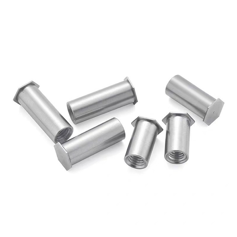 Asentaaksesi itsensä kiinnittyvän sokean kierteitetyn erottelun, tarvitset niittaustyökalun. Poraa ensin reikä materiaaliin, kiinnitä sitten mutterin varsi reikään. Työkalu vetää karjan mutterin läpi, mikä tekee varren pullistumasta materiaalin takaosaan. Se luo pysyvän, tärinänkestävän kierteisen kiinnittimen. Käytä vain tavallista pneumaattista tai hydraulista niittipähkinätyökalua, joka vastaa mutterin kokoa, melko suoraviivaista.