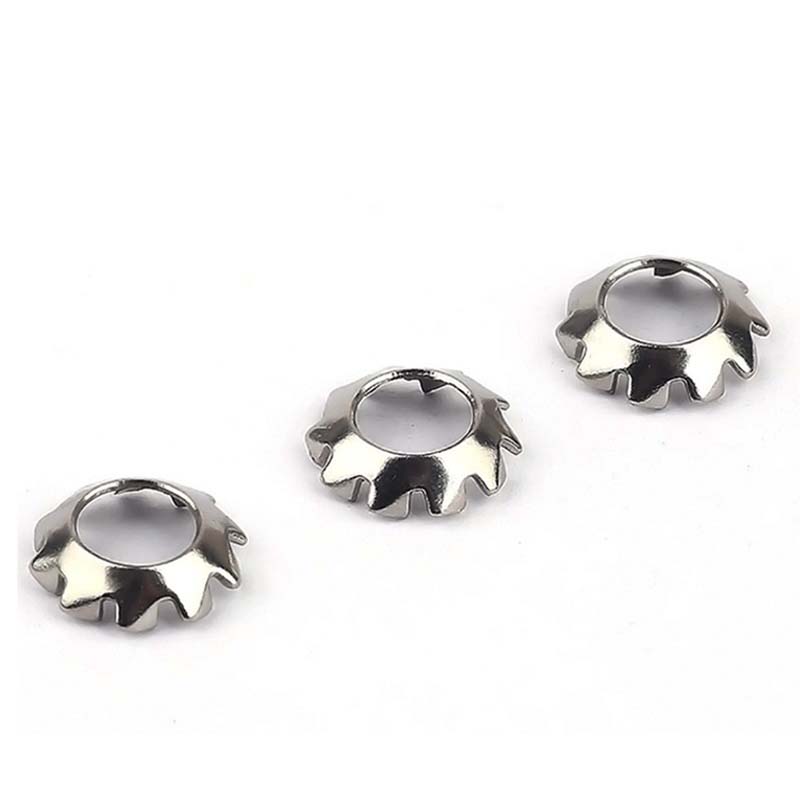 Keväänlukon aluslevyn koot ovat M3 (pieni) M24: een saakka (iso-se on suunnilleen yhden tuuman pultit). He seuraavat ISO- ja DIN -laatustandardeja. Ulkon halkaisija vaihtelee 7–50 mm ja paksuus kulkee 1–5 mm, paksummat hoitavat raskaampia töitä. Xiaoguo® -valmistaja voi tarjota räätälöityjä. Voit tilata mukautettuja sisähalkaisijoita. Hammaskulmat (yleensä 60 ° - 90 °) on suunniteltu puremaan paremmin pintoihin.
