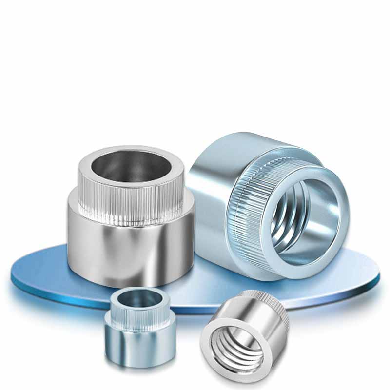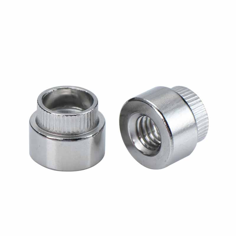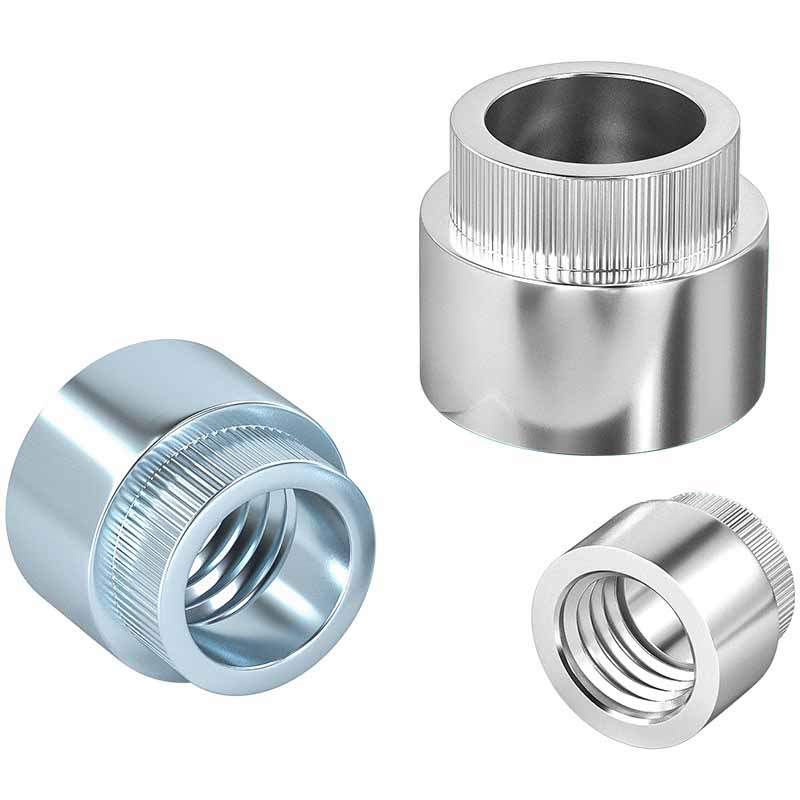 Sillä välin pyöreässä mutteriosalla on säännölliset langat sisällä. Suuri puuttuva laippa tekee kaksi työtä: se levittää puristavan voiman ulos, joten se ei tuhoa ohutta materiaalia, ja newling (nuo pienet harjanteet) puree pintaan estääksesi koko pyöreän niittien pensan pyörittäessä, kun käännät pultin sisään tai ulos.