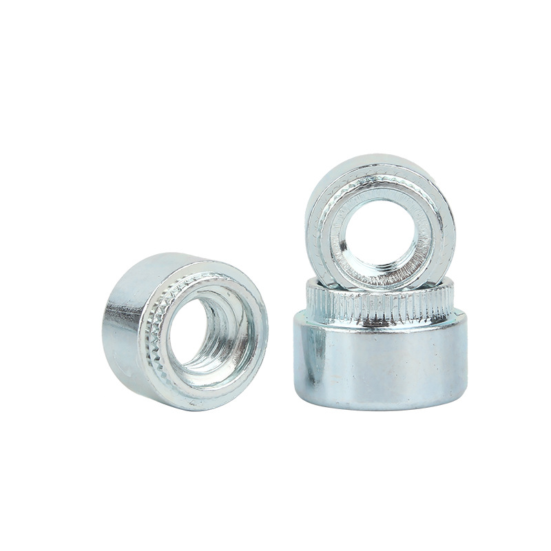 Ruostumattomasta teräksestä valmistettu pyöreä itsepintainen pähkinä on eräänlainen sokea kiinnitys. Sitä käytetään pääasiassa pysyviin, erittäin lujaan kierteisiin yhteyksiin, kun pääset vain työkappaleen toiseen puoleen. Tärkein osa on sen jako -hihnan runko - Kun asennat sen, tämä hiha laajenee ulospäin.