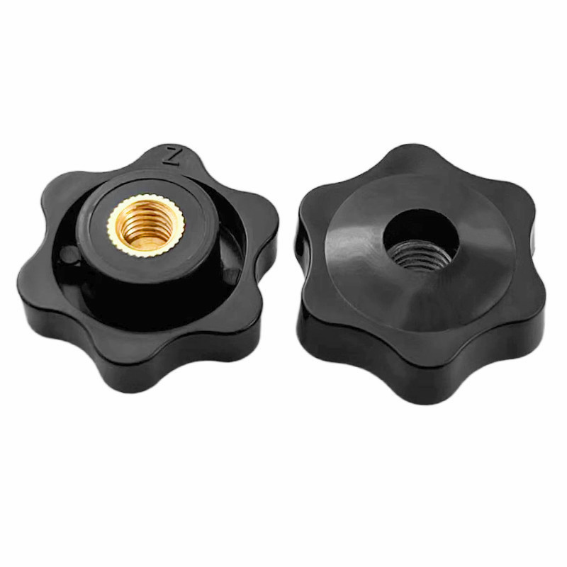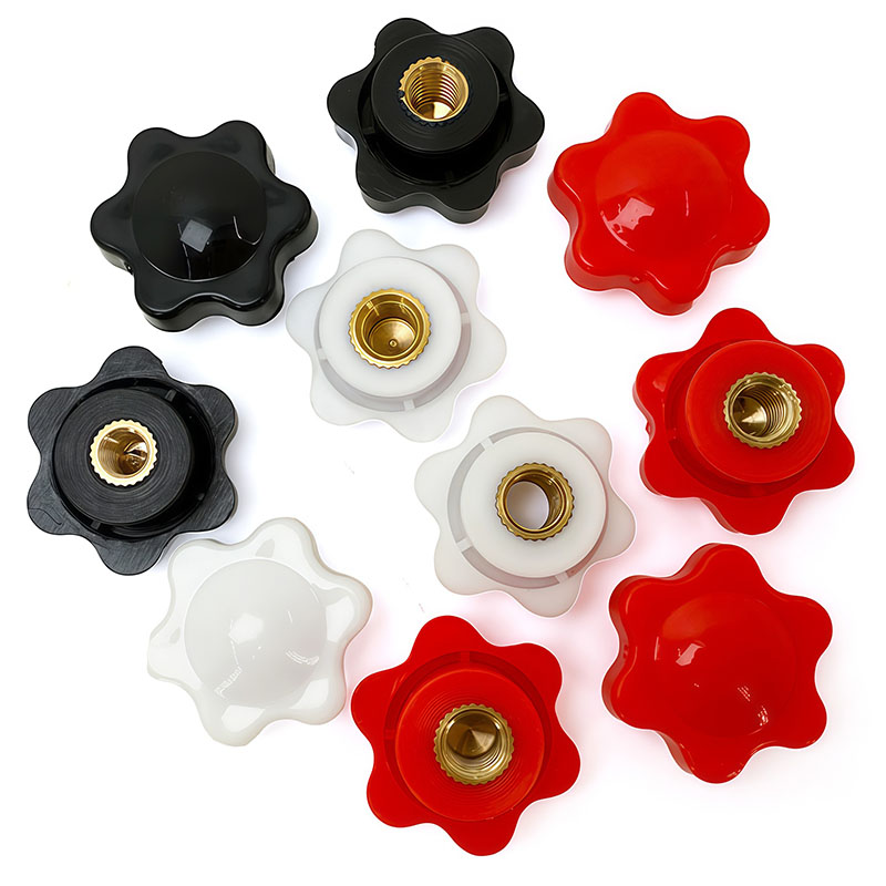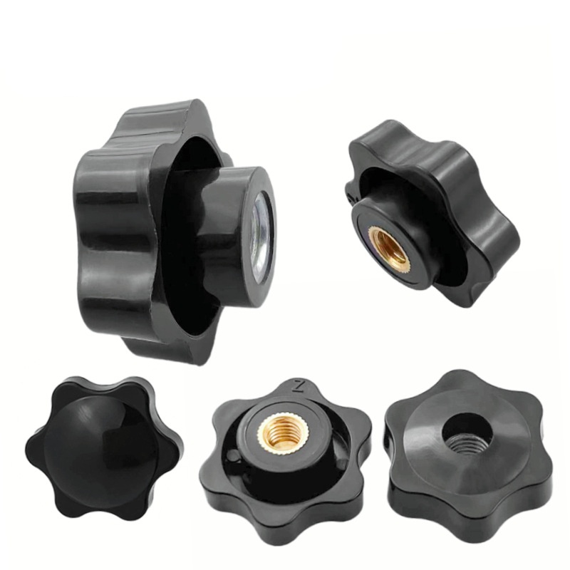 V: Tähtien nupin valitessa on otettava huomioon kolme keskeistä tekijää reikätyyppimutterin läpi: Ensinnäkin lankakoko, jonka tulisi vastaa metrisiä kokoja, kuten M4 ja M6 tai keisarillinen koko, kuten 1/4 "-20; toiseksi, materiaalin paksuus, toisin sanoen asennusalustan paksuus; ja kolmas, vaadittu vääntömomentti varmistaakseen, että kokoonpanon kiristävät vaatimukset ovat.