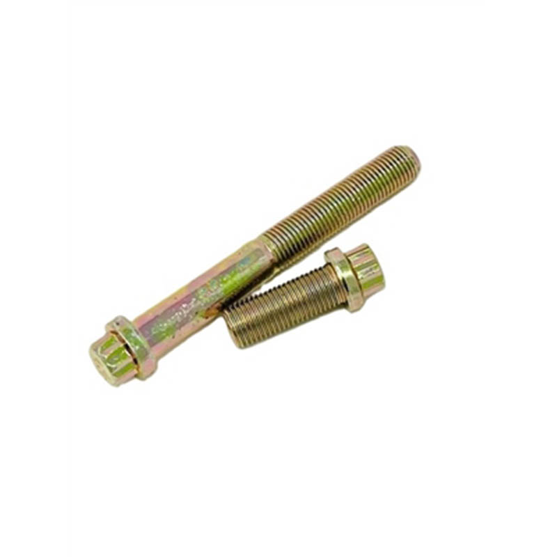 Näillä teräksisellä korkean vetoisuuden 12 pisteen laippapultilla on vakiomuotoinen, käytännöllinen muoto ilman ylimääräisiä koristeellisia yksityiskohtia. Yläosa on 12-puolinen pää, joka on tehty toimimaan sopivan 12-pisteisen pistorasian kanssa kiristystä tai löysäämistä varten. Aivan pään alla on leveä litteä laippa, joka toimii kuin sisäänrakennettu aluslevy, joten et tarvitse erillistä aluslevyä useimpiin töihin. Laipan alla oleva akseli on suora, ja siinä on sileät, tasaiset kierteet, jotka kulkevat kokonaan alas mutterien tai esikierteitettyjen reikien sovittamiseksi. Ei ole karkeita reunoja tai purseita, jotka vaikeuttaisivat asennusta. Koko kiinnike on kompakti ja kiinteä, tehty istumaan tasaisesti pintoja vasten tiukan istuvuuden takaamiseksi. Jokaisella kappaleella on samat tarkat mitat, joten jokainen näyttää ja sopii samalta – tämä tekee siitä helpon käyttää toistuviin kokoonpanotöihin tai nopeisiin vaihtoihin.