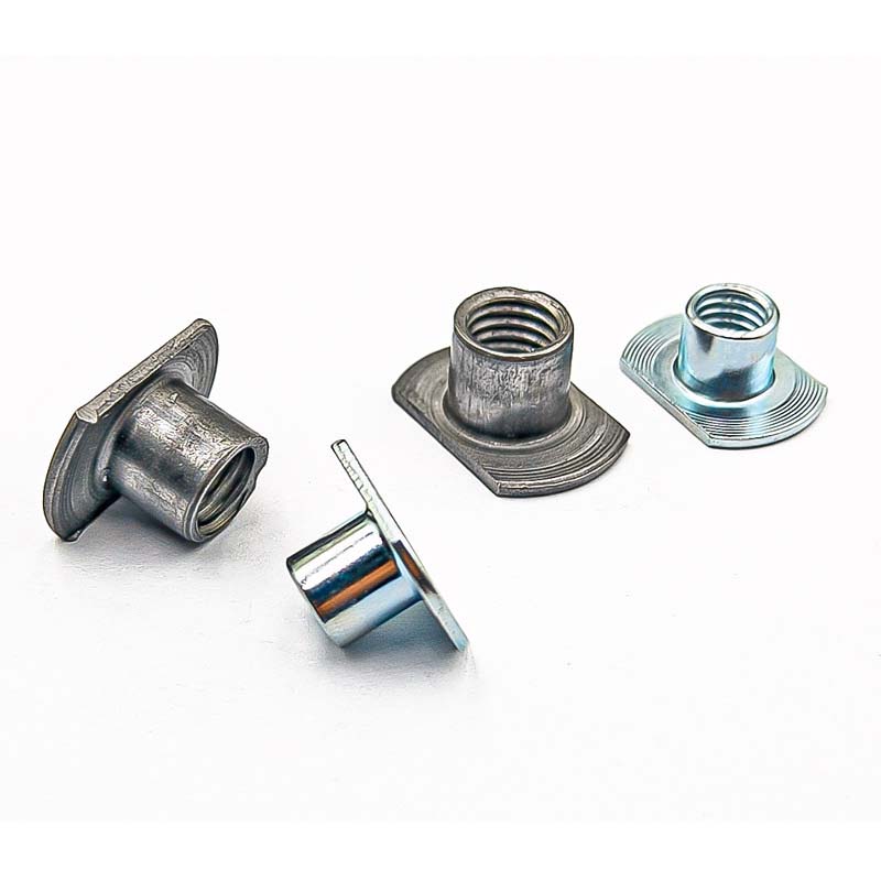 Tyypin 2A hitsausmutterit T Style on yleensä valmistettu hiiliteräksestä ja tyypillisesti galvanoitu. Ulkonemat ovat tarkasti muotoiltuja ja niiden korkeus ja muoto vaikuttavat suoraan hitsauksen laatuun. Jos ne taipuvat käsittelyn aikana, se vaikuttaa hitsauksen laatuun. Tehtaamme varmistaa, että nämä ulkonemat ovat tasaiset ja riittävän tukevat syöttöjärjestelmään.