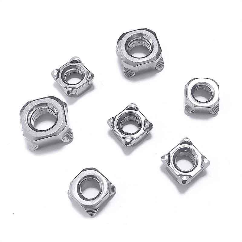 Jos käytät pistehitsauslaitteita, B-neliömutterit ovat yleensä sopivampi valinta kuin tyypin A. Nämä kohotetut ulkonemat on suunniteltu siten, että pistehitsauselektrodin kärki voi painaa niitä alaspäin. Ulokkeet ohjaavat hitsausvirran kulkua ja voivat ennustettavasti sulaa muodostaen siten vahvan hitsisydämen. Tämä tekee niistä erittäin yhteensopivia massatuotantoon tarkoitettujen automatisoitujen pistehitsauslinjojen kanssa. Neliömäiset reunat on helpompi sijoittaa kuin pyöreät mutterit. Aseta ne vain rautalevylle ja näet heti, ovatko ne oikein paikoillaan. Neljä hitsausuloketta ovat samankokoisia, ja ne kuumenevat tasaisesti hitsauksen aikana, mikä tekee siitä vähemmän todennäköistä. Kierrereiät ovat suoria, ja pultit voidaan kiinnittää sujuvasti ilman, että ne jää kiinni. Vaikka rautalevy on hieman vääntynyt, niin kauan kuin mutterit ovat oikein hitsattuja, pultit voidaan kiristää kokonaan.