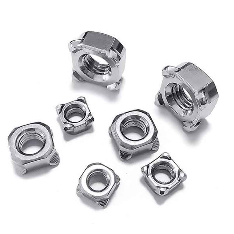 Tyypin B nelikulmaiset hitsatut mutteritei ole reikiä tai yksinkertaisia kulmia; sen sijaan jokaisessa kulmassa on erilliset ulkonemat. Tämä on keskeinen ominaisuus. Voit hitsata suoraan näihin ulkonemiin. Tämä malli tarjoaa yleensä tasaisemman hitsausytimen, koska ulkonemat sulavat ja sulautuvat alla olevan metallilevyn kanssa. Tämä on yleinen eritelmä erityisesti autoteollisuudessa.