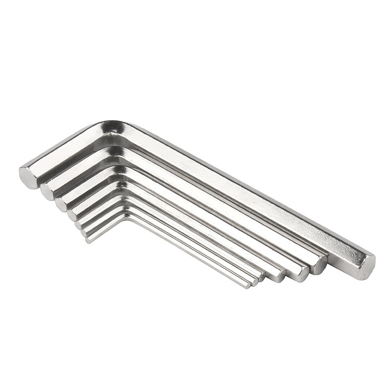 Tämä tavallinen käyttäjäystävällinen kuusikulmainen jakoavain on L: n muodossa - se on suunnittelussa yksinkertainen, mutta toimii erittäin hyvin. Se tarjoaa kaksi voimapistettä ja voidaan valita vaaditun vääntömomentin perusteella. Pitkää puolta voidaan käyttää suuremman vääntömomentin levittämiseen kiinnittimeen, kun taas lyhyt puoli sopii nopeaan kiristymiseen tai toimintaan suljetussa tilassa. Korkealaatuisten jakoavaimien päät on leikattu tarkasti terävillä ja sileillä reunoilla - jotta ne mahtuvat täydellisesti ruuvipäähän liukumatta. Monissa uudemmissa jakoavaimissa on myös mukavat muovi- tai kumikahvat pitkällä käsivarrella. Tämä helpottaa niiden tarttumista ja hallintaa pitkän käytön aikana.
