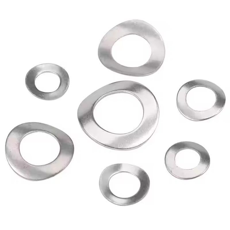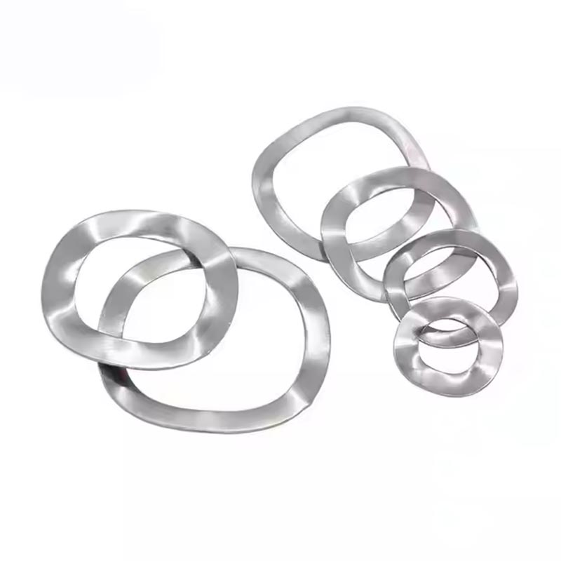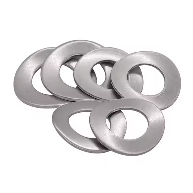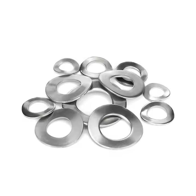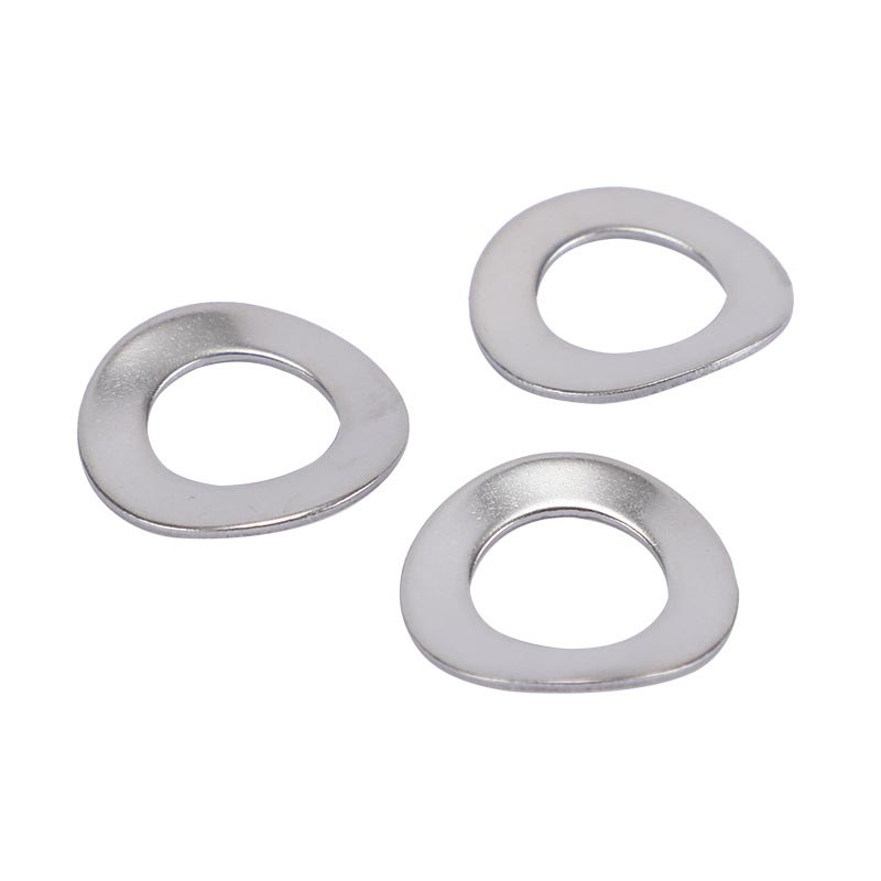 Aalto satulan kevään aluslevytovat yleensä pyöreitä muodoltaan, ja sen rakenteelle on ominaista tietyllä elastisella muodonmuutoskyvyssä.Aalto satulan kevään aluslevytovat oman elastisen muodonmuutoksensa kautta, mutterissa kiristämisen jälkeen aksiaalisen elastisen voiman tuottamiseksi siten, että mutterin välisen kitkan kytkettyjä osat tietyn määrän ylläpitämiseksi estämään värähtelyssä tai iskuissa ja muissa ulkoisissa voimissa löystymisen vaikutuksesta.